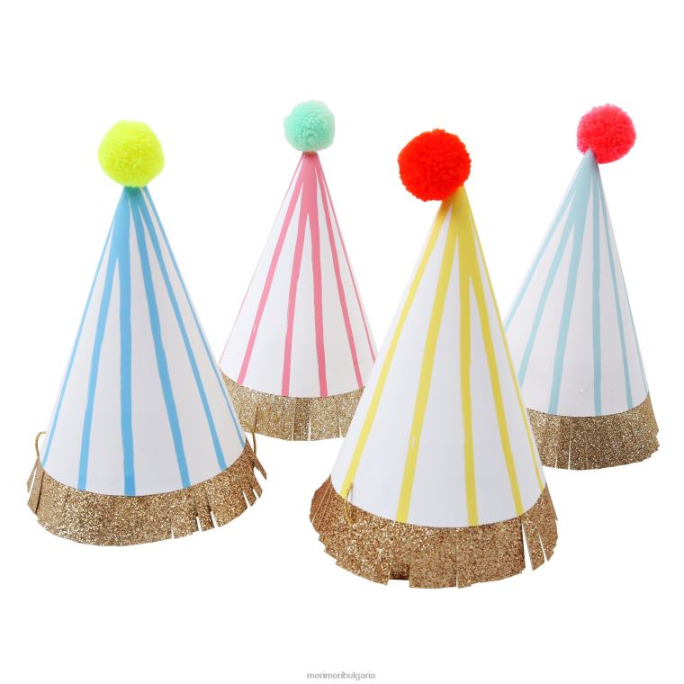 MERI MERI колекции парти шапки с помпони на райета (x 8) H880L476