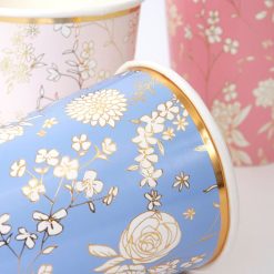 добавете красива флорална нотка към всяко парти с тези сензационни чаши за английско градинско парти. с осем различни дизайна, всички със стилни златни детайли от фолио.